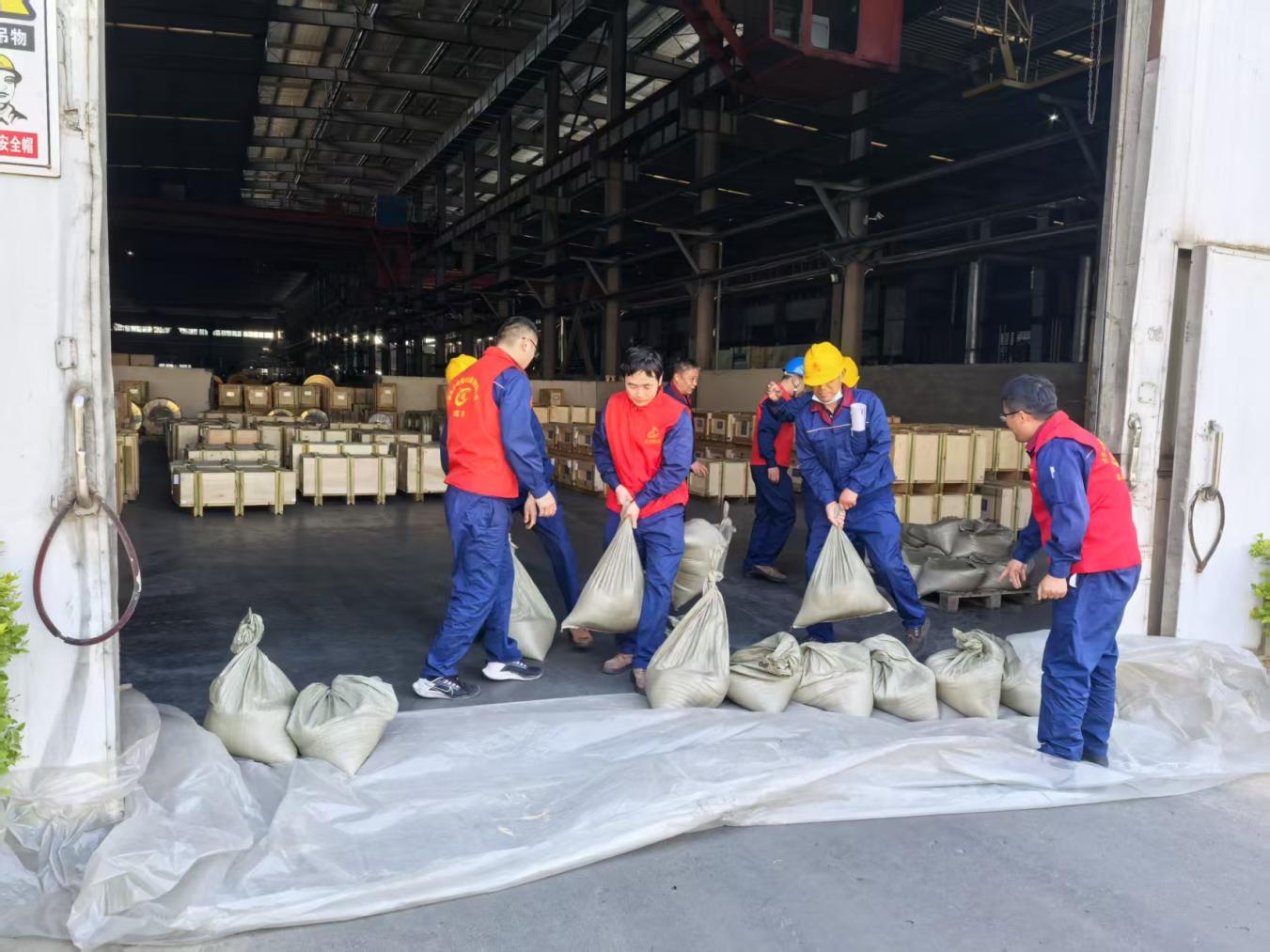 活动由总经理张忠建亲自领导部署,模拟暴雨红色预警场景,厂区内水位迅速攀升,车间面临倒灌风险。随着指令下达,党员突击队与抢险救援队即刻行动。抢险一组在安环办主任党员谷其伟的带领下奔赴厂区成品库门口,有序堆砌阻拦沙袋,构筑起抵御雨水的坚固屏障;抢险二组在生产办主任党员陈海英的指挥下,于厂区560车间门口快速铺设防洪水带并启动备用设备,全力排险。整个演练过程中,各党员干部带头冲锋,小组配合默契、行动迅速,严格按照预案执行,充分展现了公司应对洪涝灾害的高效组织能力与应急处置水平,切实检验了防汛工作的实战能力。